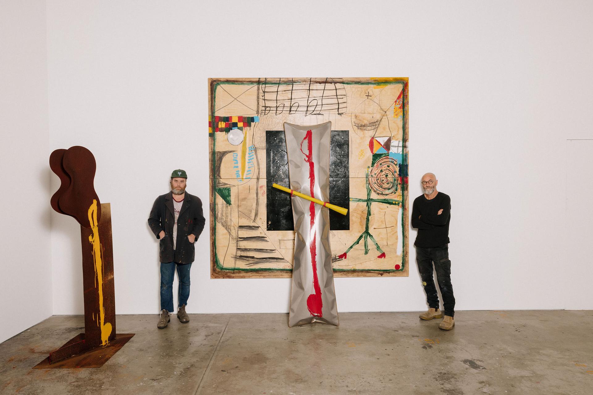 Opening this Saturday 19 July, 11am – 5pm, the exhibition marks the culmination of 18 months of creative sparring, experimentation, and boundary-breaking. What began as a polite artistic dialogue evolved into a thrilling and unrestrained game—an aesthetic chess match of mark-making, material exchange and conceptual play.